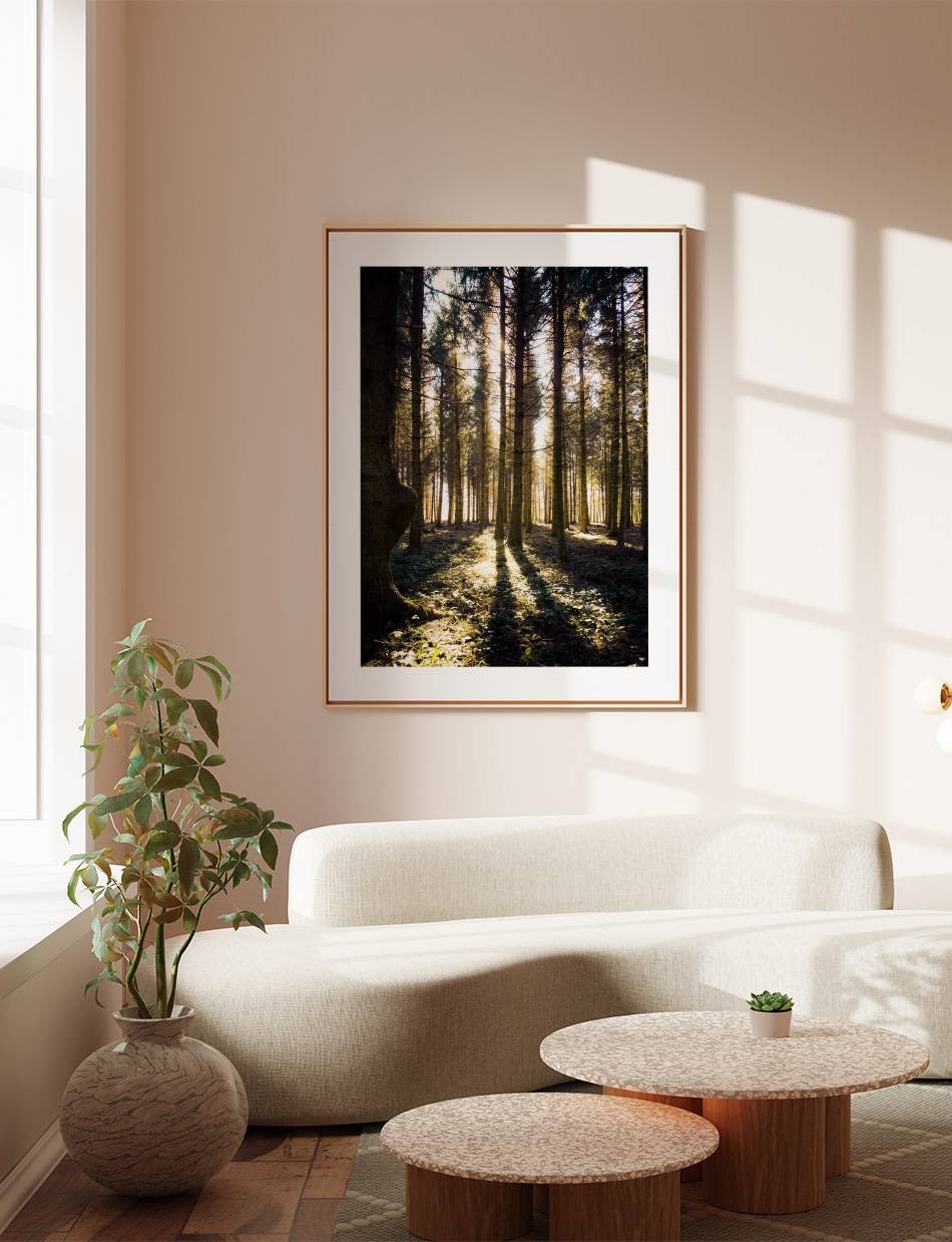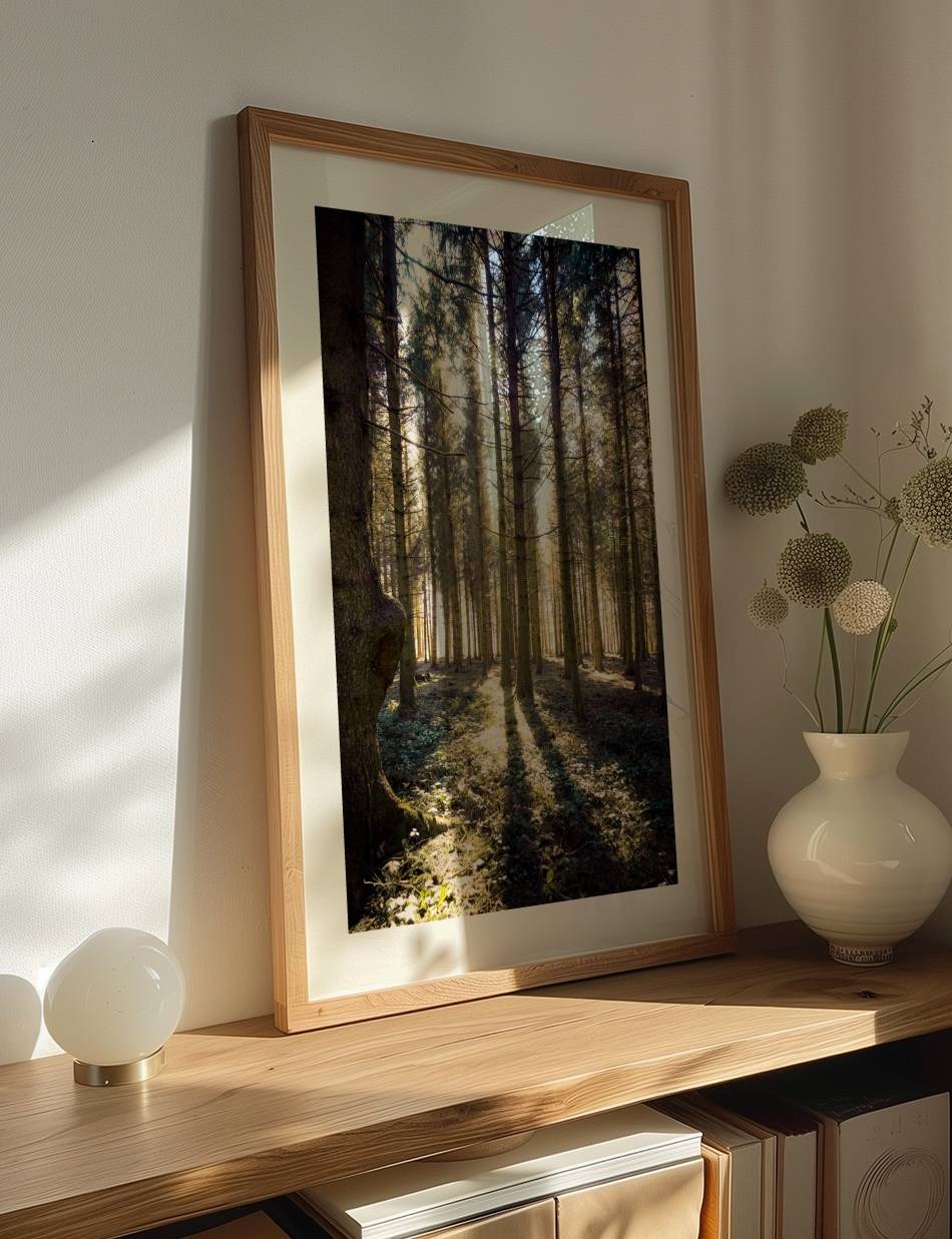 Træd ind i en verden af uudforskede skovområder med denne fotoplakat, der inviterer dig til at udforske dybden af naturens skønhed. Dets rige detaljer og levende teksturer formidler en følelse af eventyr og opdagelse, perfekt for enhver, der søger en flugt ind i naturens ro.