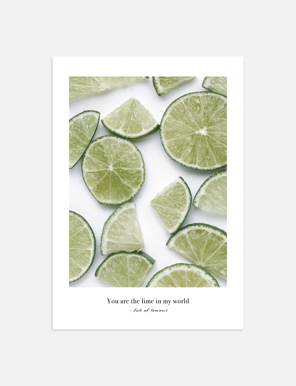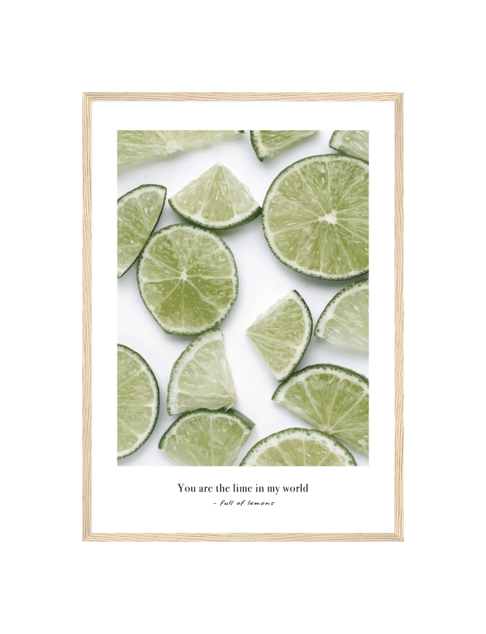 Tilfør en sjov og frisk vibe til din indretning med vores You are the Lime fotoplakat. Dens livlige farver og legende design vil uden tvivl vække glæde. Hvem vil ikke starte sin dag med et smil?